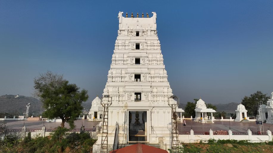 The enchanting Sanghi Temple, nestled 35 km from Hyderabad in Sanghi Nagar, is a spiritual haven atop Paramananda Giri hill. Welcoming devotees through the grand Maha Dwaram, the temple boasts a towering Raja Gopuram visible from afar.